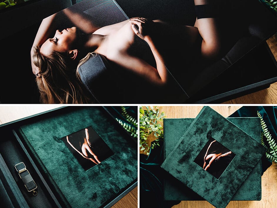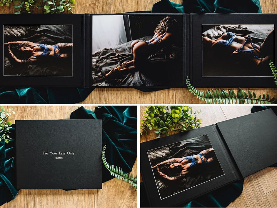 The 10×10 inch boudoir album is luxurious, classy and the ultimate keepsake. Select 15-20 images to be showcased in this stunning album. All wrapped up in a presentation box, you can choose from a range of cover options and personalisation to make it as unique as you!