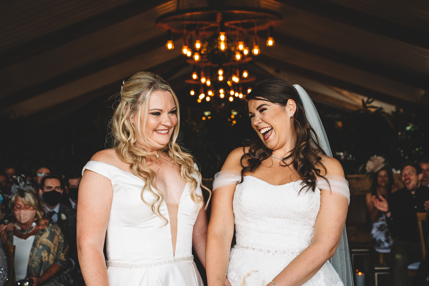 One of the great things about Woodstock is that you get a choice of ceremony locations. It is licensed for outdoor ceremonies or you can say your vows inside the restored barn. Gemma and Hollie went for the latter option and held their wedding ceremony in the barn. They both loved the space with its oak beams, reclaimed wood panelled walls and views across the Yorkshire countryside.